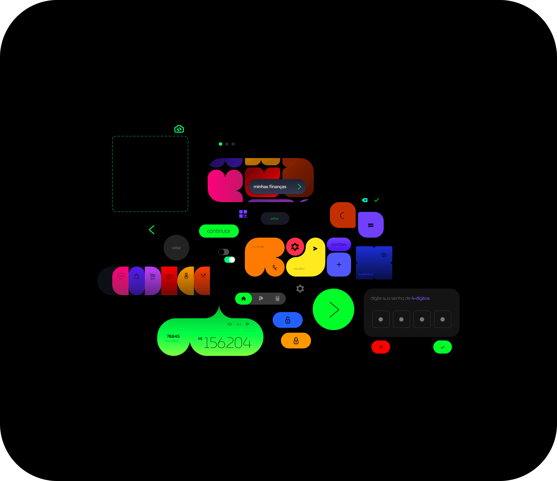 Executando papéis de UX/UI Product Designer & Branding Developer, a ideação do projeto passou a ser planejada com foco no escopo. A criação de uma marca vibrante e visualmente jovem conversava com a proposta disruptiva. O naming surge diretamente do fator funcional de ser uma digital wallet. A tomada de decisão estratégica de tornar o Dallet um app bancário foi pensada objetivamente em trazer praticidade, eficiência diária e versatilidade.
