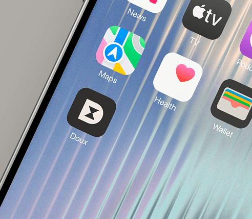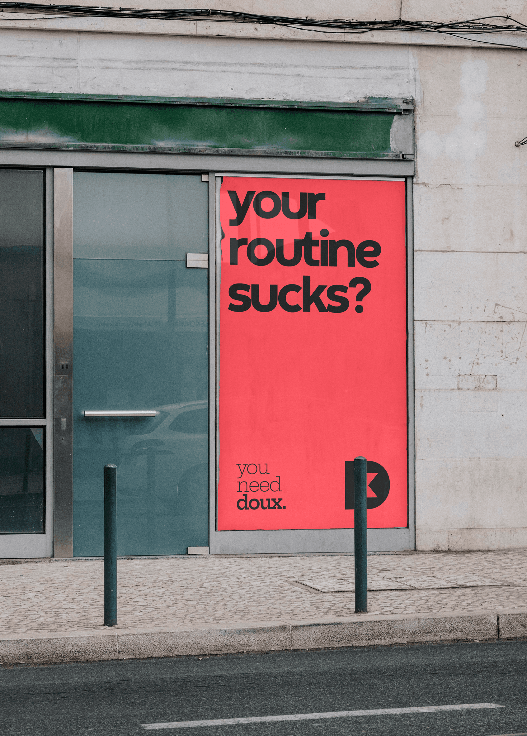 A construção da identidade visual do Doux tinha a obrigatoriedade de trazer um design kit sóbrio e minimalista. O naming foi dado partindo o pressuposto de suavizar os processos rotineiros, sendo "Doux" uma tradução francesa para "soft".